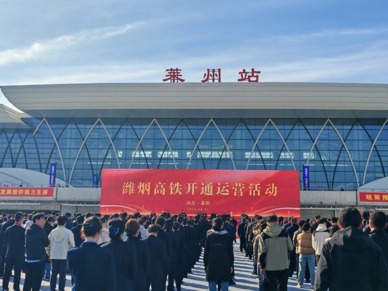 10月21日,由山東鐵投集團投資建設(shè)的濰煙高鐵開通運營,山東高鐵運營里程突破3000公里,達(dá)到3047公里,繼續(xù)保持全國領(lǐng)先。當(dāng)日上午,濰煙高鐵開通運營活動在萊州站舉行。山東省委常委、煙臺市委書記江成出席活動,副省長宋軍繼、國鐵集團安全總監(jiān)兼安監(jiān)局局長王保國出席活動并講話。9點28分,首發(fā)列車正式發(fā)車。