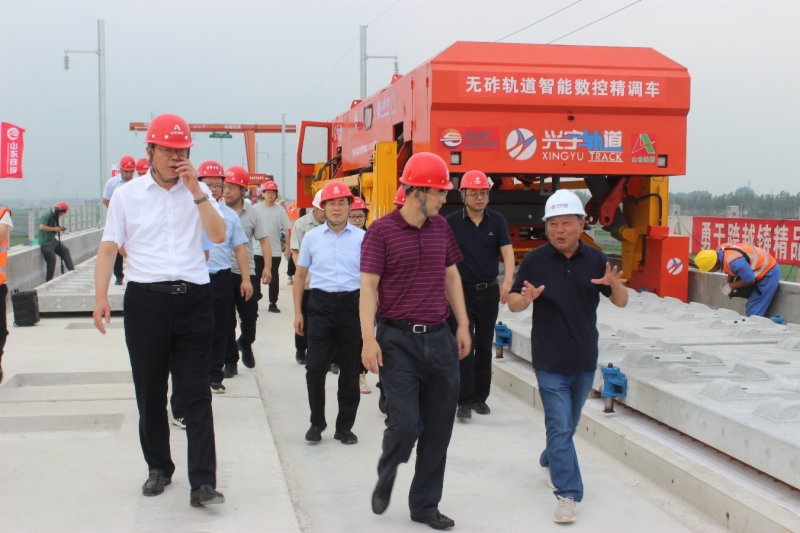 7月13日,山東鐵投集團黨委副書記、總經(jīng)理王基全赴濰煙鐵路就“CRTSⅢ型無砟軌道智能施工技術(shù)與裝備”課題進展情況開展調(diào)研。