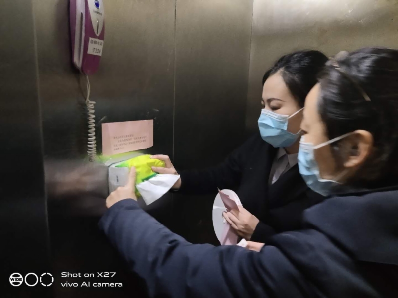 此后,每到下班后或周末,她都會與社區(qū)工作人員一起參與疫情防控:在居民進(jìn)出小區(qū)高峰時段協(xié)助測溫登記,降低人員聚集風(fēng)險;看到有下樓買菜的老人戴的還是布料口罩,或是聽小區(qū)門口執(zhí)勤的安保人員說已經(jīng)幾天未還新口罩了,就及時送上自己買到的醫(yī)用口罩;她還從單位學(xué)習(xí)好的經(jīng)驗做法,仿照山東鐵投大廈電梯廳內(nèi)的防控措施,在小區(qū)內(nèi)部電梯里貼上了抽紙,幫助鄰居們避免接觸感染。